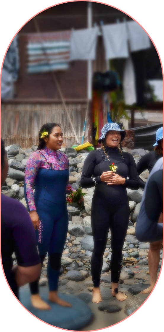 Together, we provided teenage girls from the Casa de Amistad community with a program that wove together body-awareness practices, menstrual health education, ocean and nature education, and one-on-one surf mentorship.