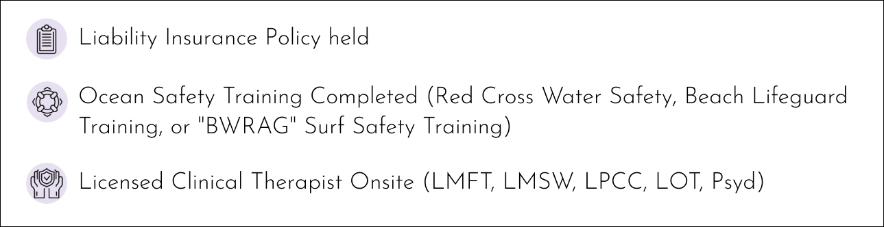 Waves of Excellence Partners are Providers that have completed the highest level of Trauma Informed Surf Therapy Training and are accredited to facilitate Groundswell Surf Therapy™ Model Programs, receiving ongoing supervision.